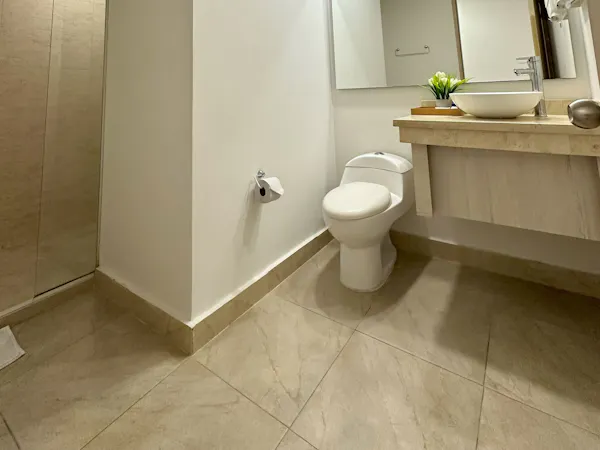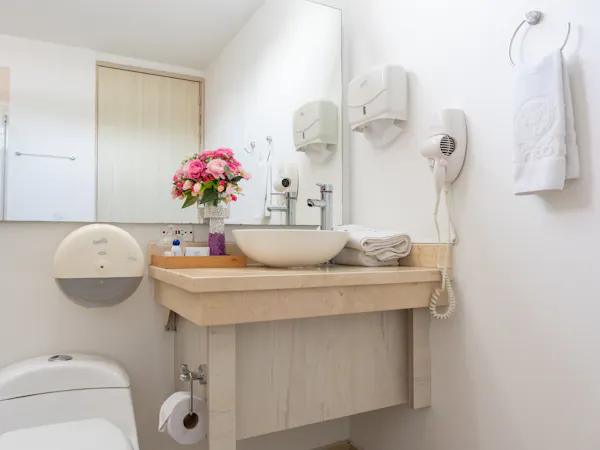 Junior Suite equipped with a spacious King Size bed, perfect for a romantic getaway or a relaxing stay. This room offers free Wi-Fi, private access card, bathroom with hot water and hairdryer. Additionally, it features air conditioning, a safe, a comfortable desk, mini fridge, and flat-screen TV. Everything needed to enjoy a cozy and comfortable atmosphere. Ideal for those seeking a luxurious and tranquil experience.
